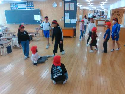 今日は、久しぶりににじいろ班(縦割り班)で活動しました。6年生が考えてきた遊びや、みんなのやりたい遊びを募って活動しました。