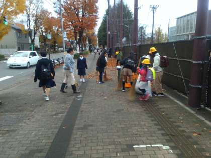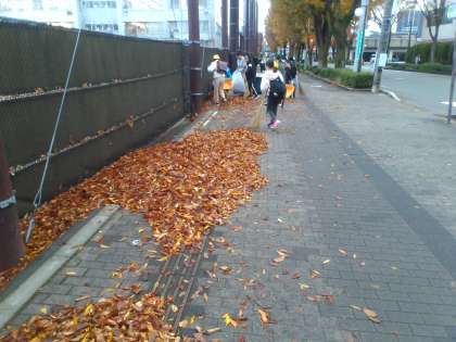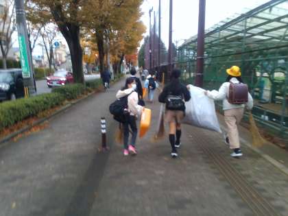 玄関前の掃き掃除を終えた後にけやき通りへ。