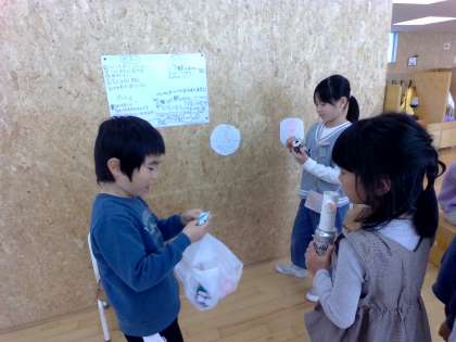 身近な材料で作った、様々なおもちゃで遊びました。