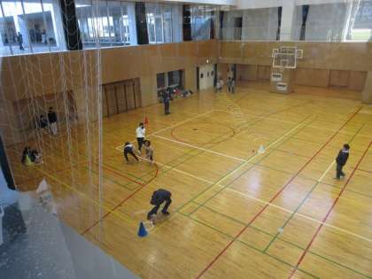 朝の体育館では、登校した子どもが体力つくりに自ら取り組んでいます。冬になりグラウンドで活動できない時期も、体力を向上させようと活動を続けています。