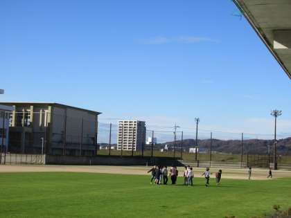 休み時間には子どもたちが、元気にグラウンドで仲間と遊んでいます。楽しい声が響いています。