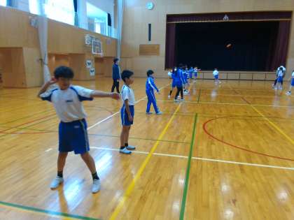 スポーツ指導員の方をお招きして、ボールを投げるポイントを教えていただきました。ボールの正しい持ち方や投げ方などを教わり、何度も投げる練習をしました。「遠くまで投げられるようになったよ」と、自分の成長を喜ぶ子供たちでした。