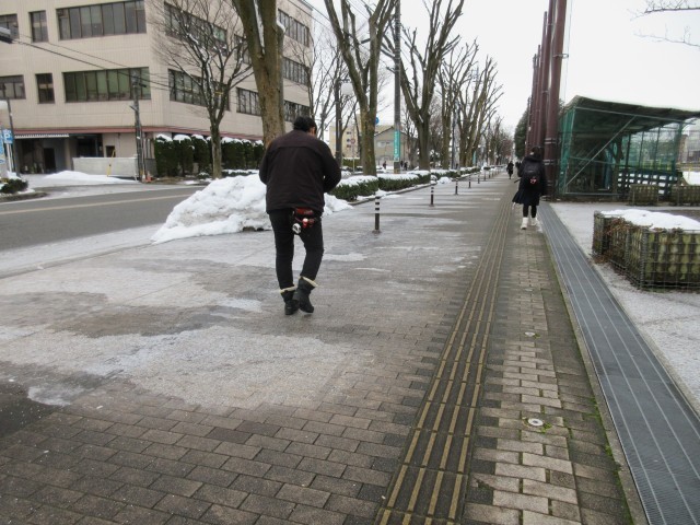 学校の周辺は積雪が次第に少なくなってはいますが、歩道の凍結が目立ちます。