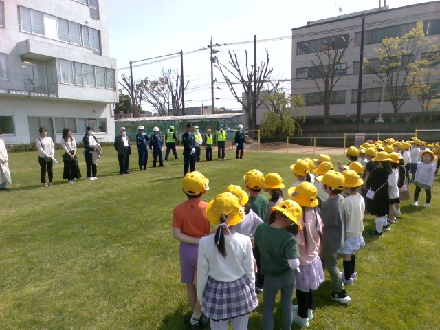 今日は警察の方や地域の交通安全協会の方、交通指導員の方、富山市危機管理課の方、保護者の方を招いて交通安全教室が開催されました