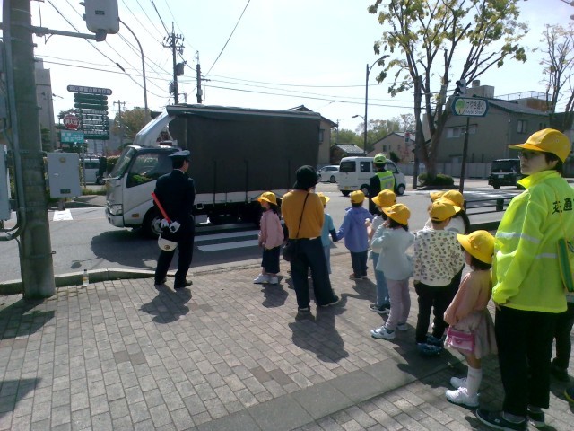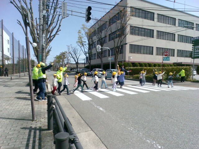 1年生は道路の歩き方や横断歩道の渡り方を教えていただき、実際に学校の周りを歩きました。