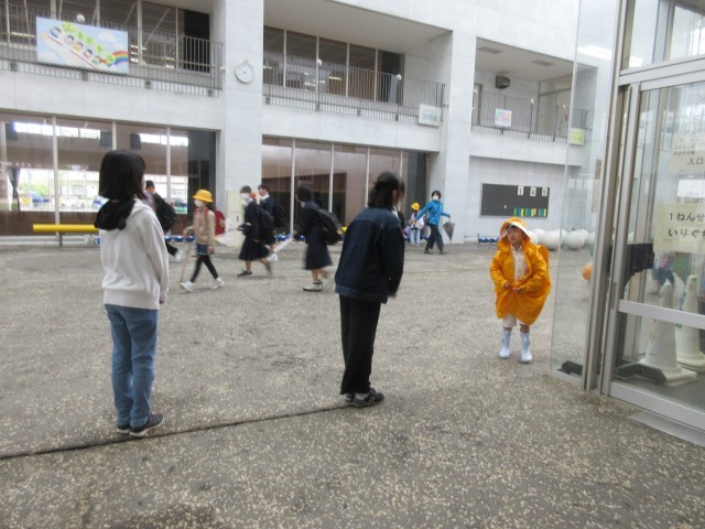 委員会活動が本格的に始まり、朝のパサージュでは、明るい挨拶が交わされ、吹き溜まった砂を掃く5,6年生の姿がありました。