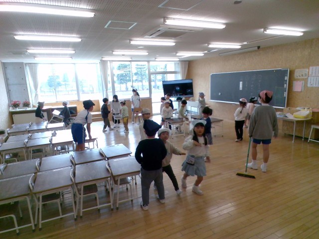 机を運んだり、掃除の仕方を教えたりするなど優しく、頼りになる6年生です