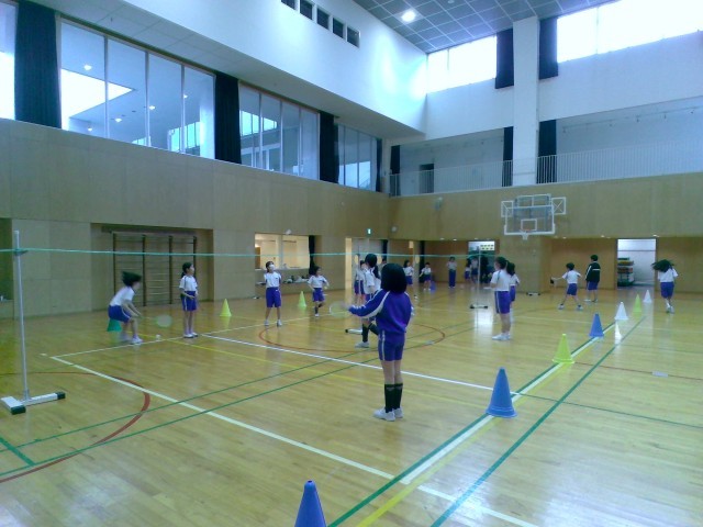 バドミントンクラブは、二人ペアになって打ち合っていました