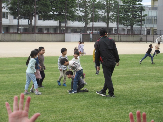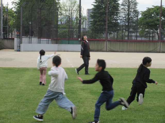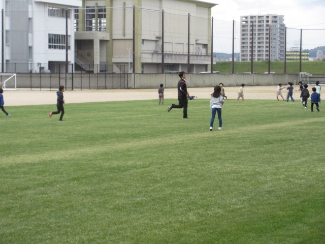 今日は少し肌寒い気候ですが、休み時間の芝生は鬼ごっこを楽しむ2年生の歓声でいっぱいでした。