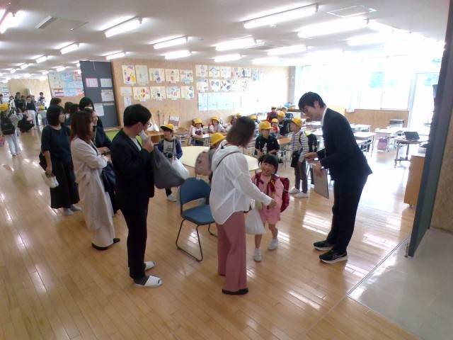 スムーズかつ安全に家族と下校ができるように、一つ一つの動きを確認しながら引き渡しを行いました