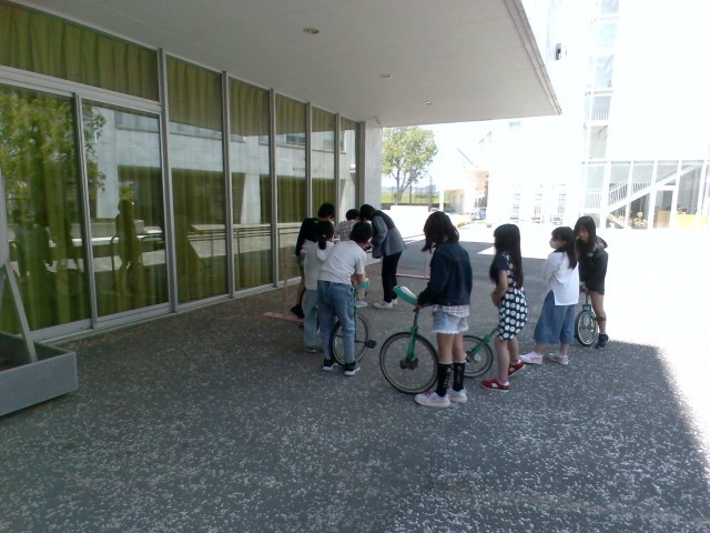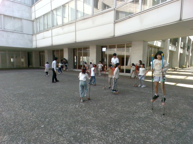 担任の先生は、竹馬や一輪車のコツを伝えながら一緒に遊んでいました