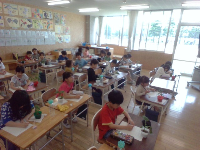 一人一つずつ苗を受取り、葉の形や大きさ、数、においやさわりごこちをよく観察して、