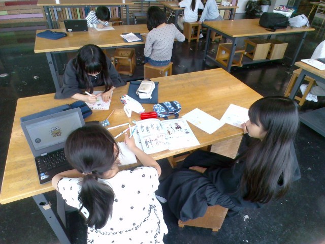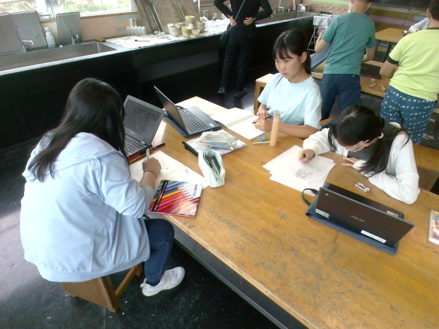 手本を参考にしたり、自分でイメージを膨らませたりしながら作品を制作していました