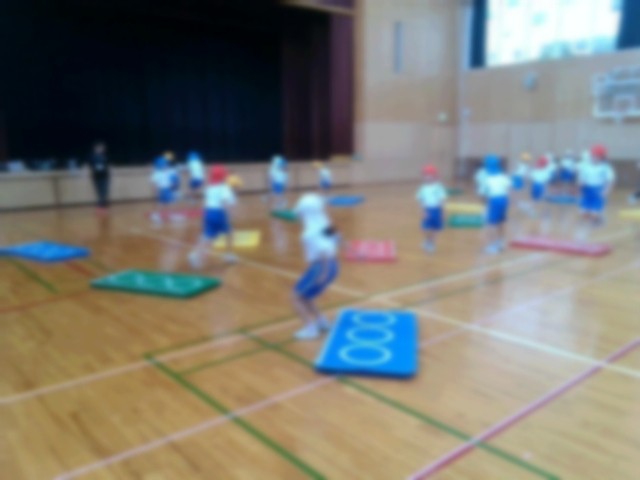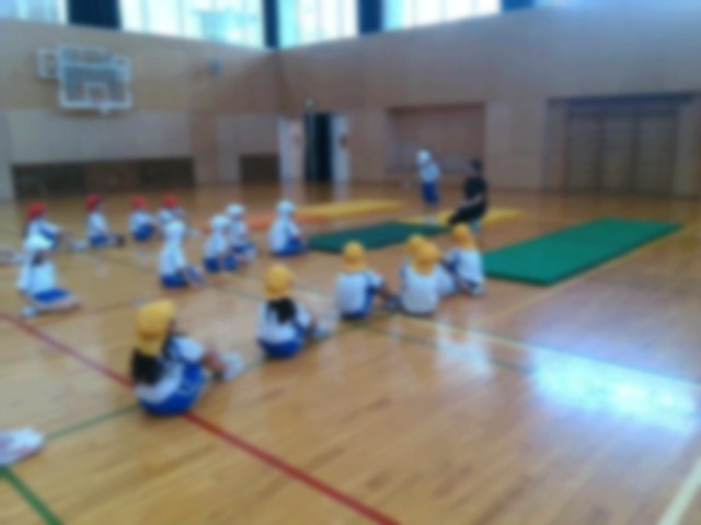 今日の体育は、富山市体育協会の方から、マットを使った運動遊びを紹介してもらい、みんなで楽しく活動しました。