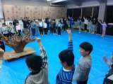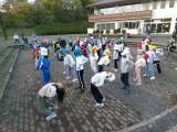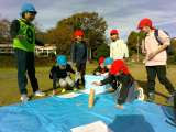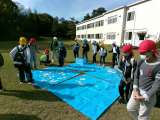 バンブーチャレンジの最後に、手形をかたどった紙皿を背中に貼り、そこへ仲間が本人の...