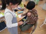 秋見つけで見つけてきた、どんぐりや松ぼっくりなどを使っておもちゃづくりをしまし...