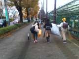 1つ目のゲームは、「ラインコントロール」 縦割り班で1れるになって肩に手を置き、...
