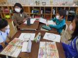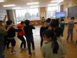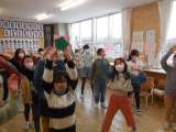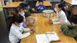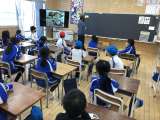 ペアになって、お互いのピザを紹介し合いました。ピザのトッピングを上手に言えるよ...