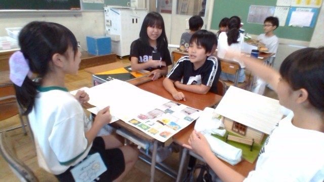 夏休みに製作した「一人一作品」を互いに紹介し合いました。頑張って作ったものを誇らしげに話す姿が印象的でした。