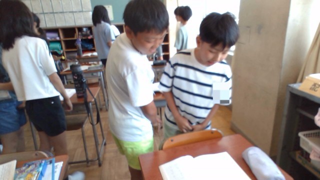 夏休み中に頑張って書いた自学ノートを見合いました。