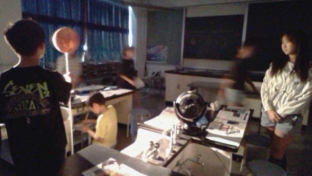 理科「月の形と太陽」の学習では、ボールに光を当てて、月の見え方を調べました。
