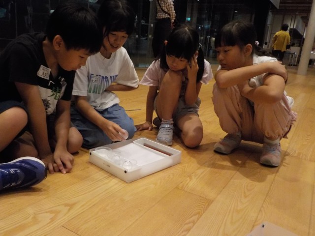2組の様子です。 さまざまなガラスを実際に触って違いを感じたり、ガラスの作品を見て感じたことを交流しあったりしました。