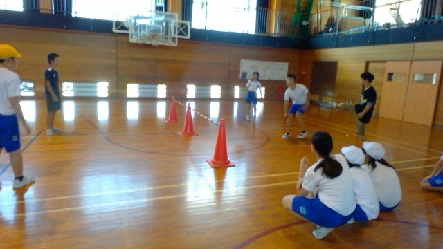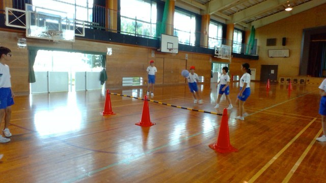 体育科「つないで、つないで、ナイスプレル」の学習では、子供たちはボールもつないで、心もつなげるように、声をかけ合いながらプレルボールを楽しんでいます。