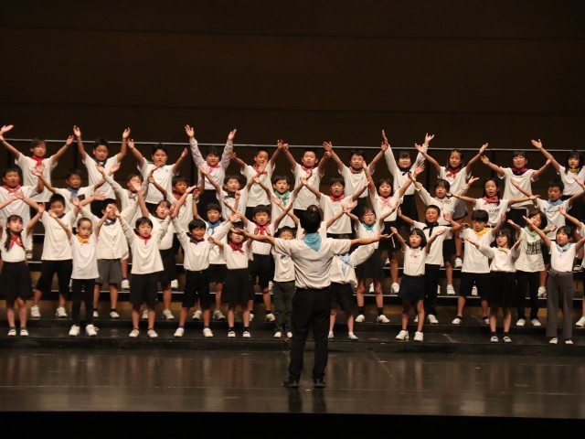 初めは「緊張する」「手が震える」と言っていた子供たちでしたが、ステージに立つと普段の練習のように笑顔を見せながら明るい声で歌うことができました。