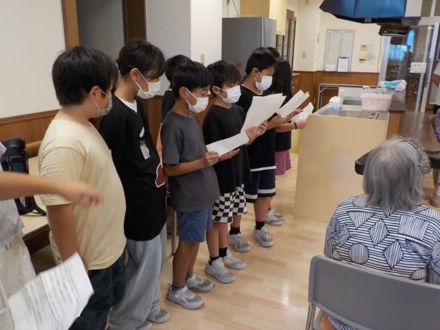 飯野タウンなごみに2回目の訪問へ行きました。前回自分たちが見たこと、感じたこと、体験したことをもとに今回は自分たちでおばあちゃんやおじいちゃんが喜んでもらえる企画を考えました。企画の進行は緊張しましたが、たくさんの方を笑顔にすることができてうれしい気持ちになりました。
