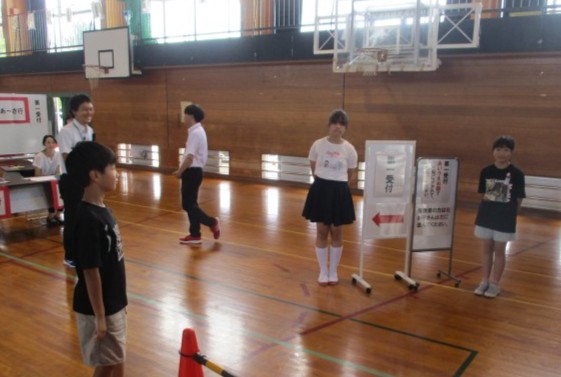 就学時健診のお手伝いをしました。体育館では、保護者の方に元気よく挨拶したり、「次はこちらです」「お困りのことはないですか」と声をかけたりしていました。