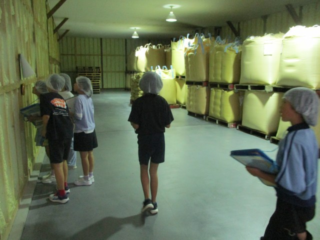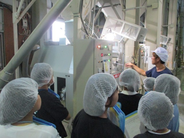今日は髙田食糧さんに見学へ行きました。最初に倉庫を見学させていただき、1袋1080kgのお米が入ったものがたくさん並んでいました。その量に子供たちは驚かされ、膨大なお米の管理の仕方や販売までの過程に興味を高めていました。工場内では、玄米から白米になる工程、お店に納品する商品を見学しました。「お客さんの口に入るものだから」と、美味しさを追求したり、安全管理を徹底したりと工場の方々の働く姿勢に子供たちは感心していました。