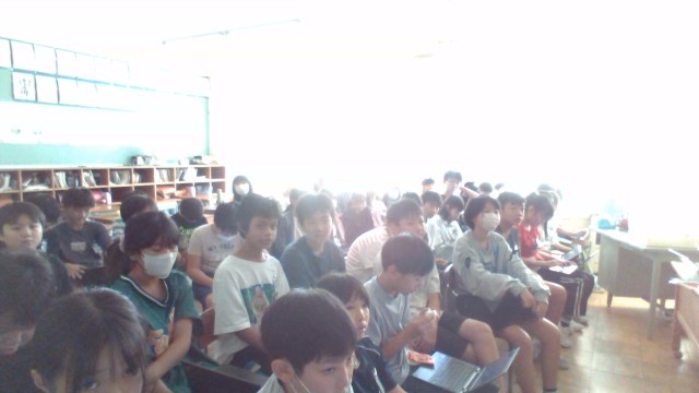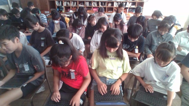 今日は、昨日撮影した劇を観賞しました。子供たちは、チャットを用いて、改善点を共有しました。