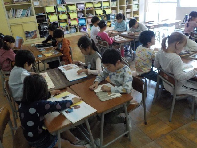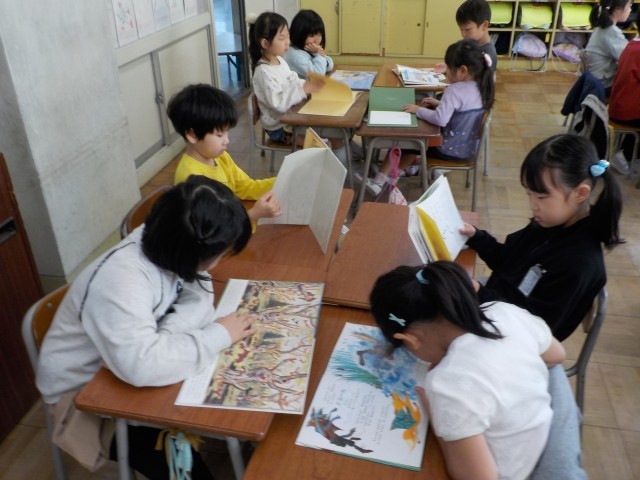 「この場面が面白かったよね。」「今度は全部読んでみたい!」など感じたことを自由に話していました。