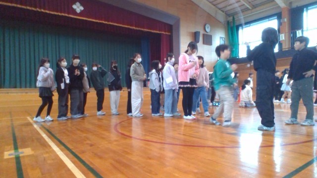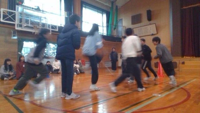 運動委員会が企画した「大縄大会」に参加しました。息を合わせて跳んでいました。