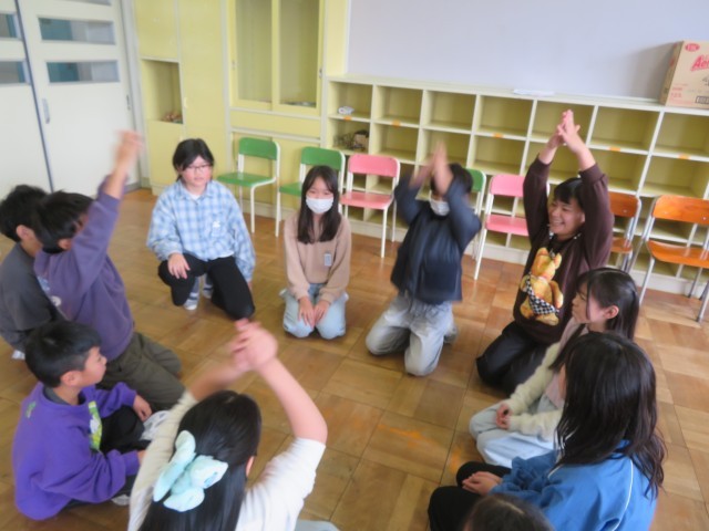 国語科「クラスみんなで決めるには」の学習で、クラスで話し合い、準備を進めた学年集会を開催しました。1組は、フルーツバスケット、爆弾ゲーム、2組は、おにプラスいすゲット、たけのこニョッキの出し物をしました。ねらいである、学年で仲良くなることを意識して、それぞれのゲームで楽しい笑い声がたくさん聞こえました。2学期最終日、とても温かい気持ちで終えることができました。