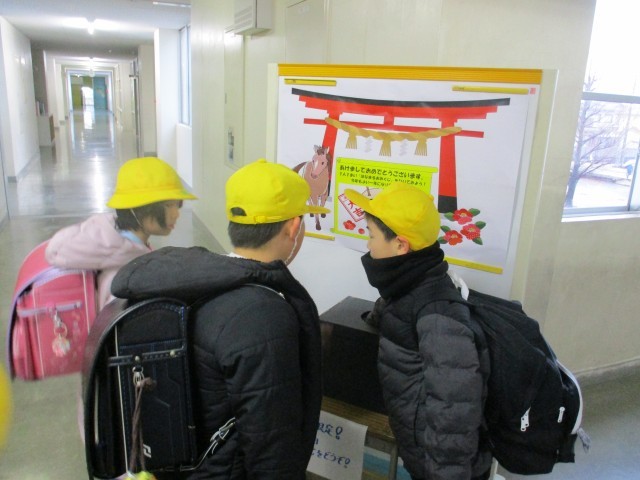 3年生教室前に設置されたおみくじを引き、楽しみました。