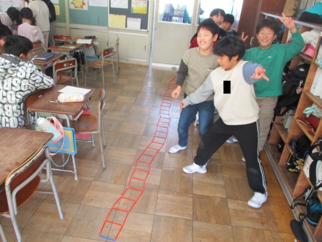「正方形を30個つくるには、棒は何本必要ですか」という問題に対して、ノートに図を書いて考える子、式と答えでまとめる人、表や言葉で書く子、実際に棒を並べて試す子等、いろいろな方法を考えて答えを求めようとしていました。友達と協力する中で、「あ~そういうことね!」「他にも式あるんじゃない?」と、学びがどんどん深まっていく姿も見られました。