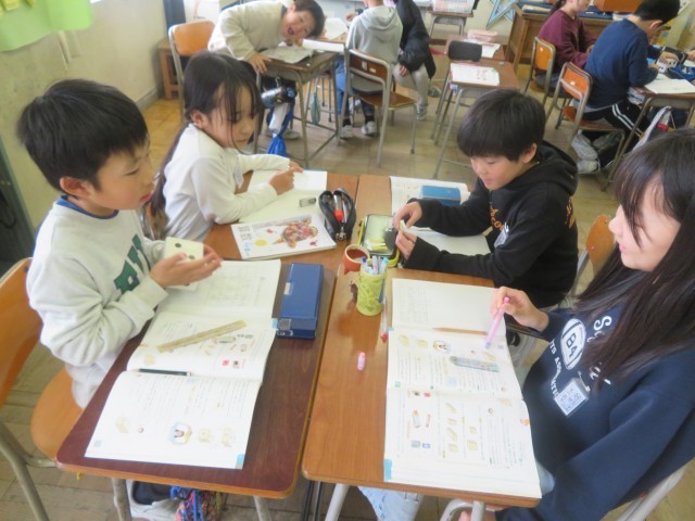 4年生の学習も残りわずかとなりました。4年生は自分で考える時間と友達と考える時間を大切にしながら学習を進めています。写真は算数の勉強中の様子です。直方体や立方体について真剣に考えていました。