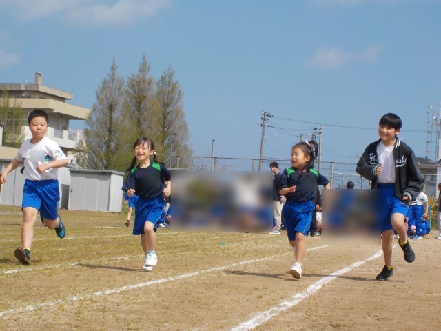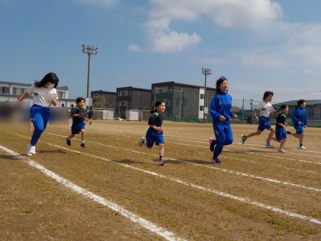1年生が入学して初めて50m走を行いました。6年生は、1年生が最後まで走り切ることができるように「がんばれ!」「あと少し!」「早いね!」等と声をかけながら伴走しました。