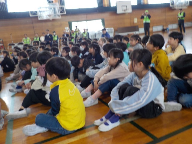 今日は広田防犯パトロール隊・「あいの家110番」の出発式と防犯教室がありました。2年生は防犯教室に参加して家にしっかり鍵をかけることや、「いかのおすし」について確かめました。最後はパトカーも見せていただくことができました。