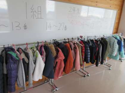 今年度より、教室近くにコートかけを設置しました。