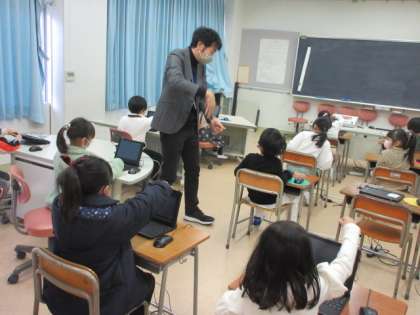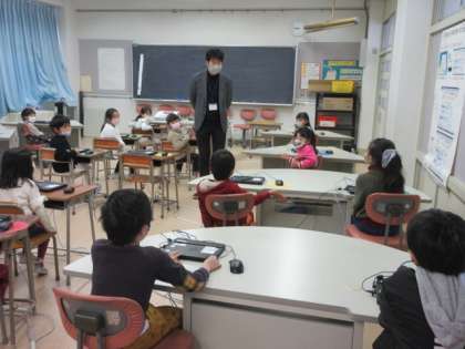 今年度から始まるプログラミング教育や、GIGAスクールに向けて、1年生もPCに慣れる学習を進めています。