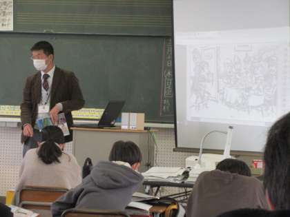 明治時代の国際関係樹立に向けた日本の取組みについて学んでいました。