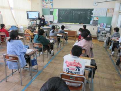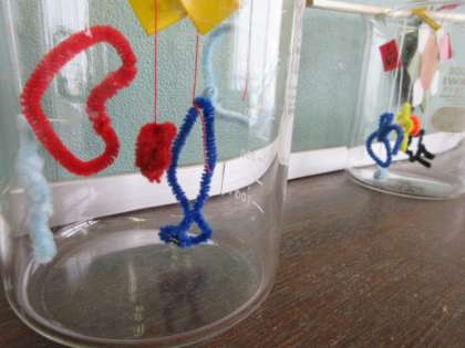 教室の後ろには、理科の再結晶(結晶づくり)の準備も進められています。