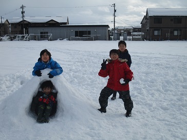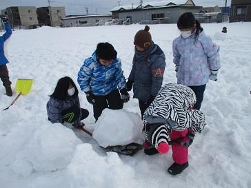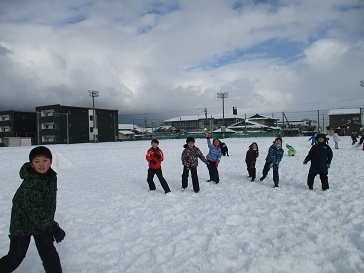 天気に恵まれた6限にグラウンドで雪遊びをしました。色団に分かれて「作る」「動く」をテーマに、それぞれが遊び方を工夫して活動していました。「こんなに広い場所は気持ちがいいな!」「ゆ、雪が重い…。」「久しぶりにみんなで遊べて、やっぱり楽しいな!」子供たちの楽しい声が雪原に響き渡っていました。
