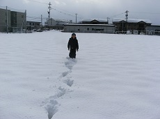 2年生にとって、腰の高さまである雪で、途中で雪にはまってしまう子や、歩きにくそうにしている子ばかりでした。
