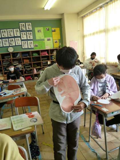 今日は、お母さんの子宮の中でどのように大きくなっていくかを考えました。
