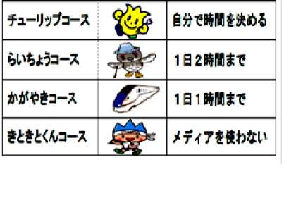 メディアをセルフコントロールする4コース(写真参照)を設定し、家族と相談して、自分で挑戦するコースを選ぶように工夫しました。