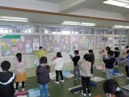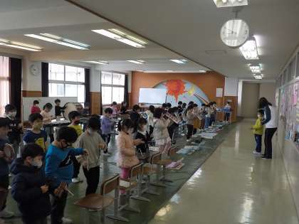 学び発表会では、自分ができるようになったことの発表します。発表の中には、1年生が様々な楽器を使って合奏する場面もあります。鍵盤ハーモニカや木琴、鉄琴、トライアングル、ウッドブロック、鈴、タンブリン、ピアノ、オルガン、大太鼓、小太鼓など、自分の担当の楽器を一生懸命練習しています。本番では今までの練習の成果を発揮し、心を一つに演奏します。DVDを楽しみにお待ちください。