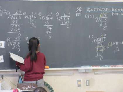 これまで学んできた小数の割り算がどれだけ身についているのか試しています。